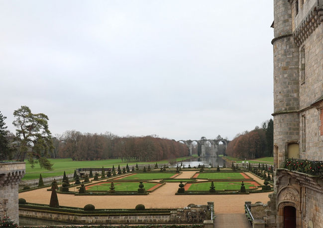 Bien visible derrière les grilles, se déploie la silhouette du Château de Maintenon. L’édifice serait probablement resté anonyme, s’il n’avait recueilli un moment, une hôtesse célèbre qui devait profondément imprégner les lieux, Madame de Maintenon, avec à sa suite, le rayonnement du Roi Soleil, Louis XIV.